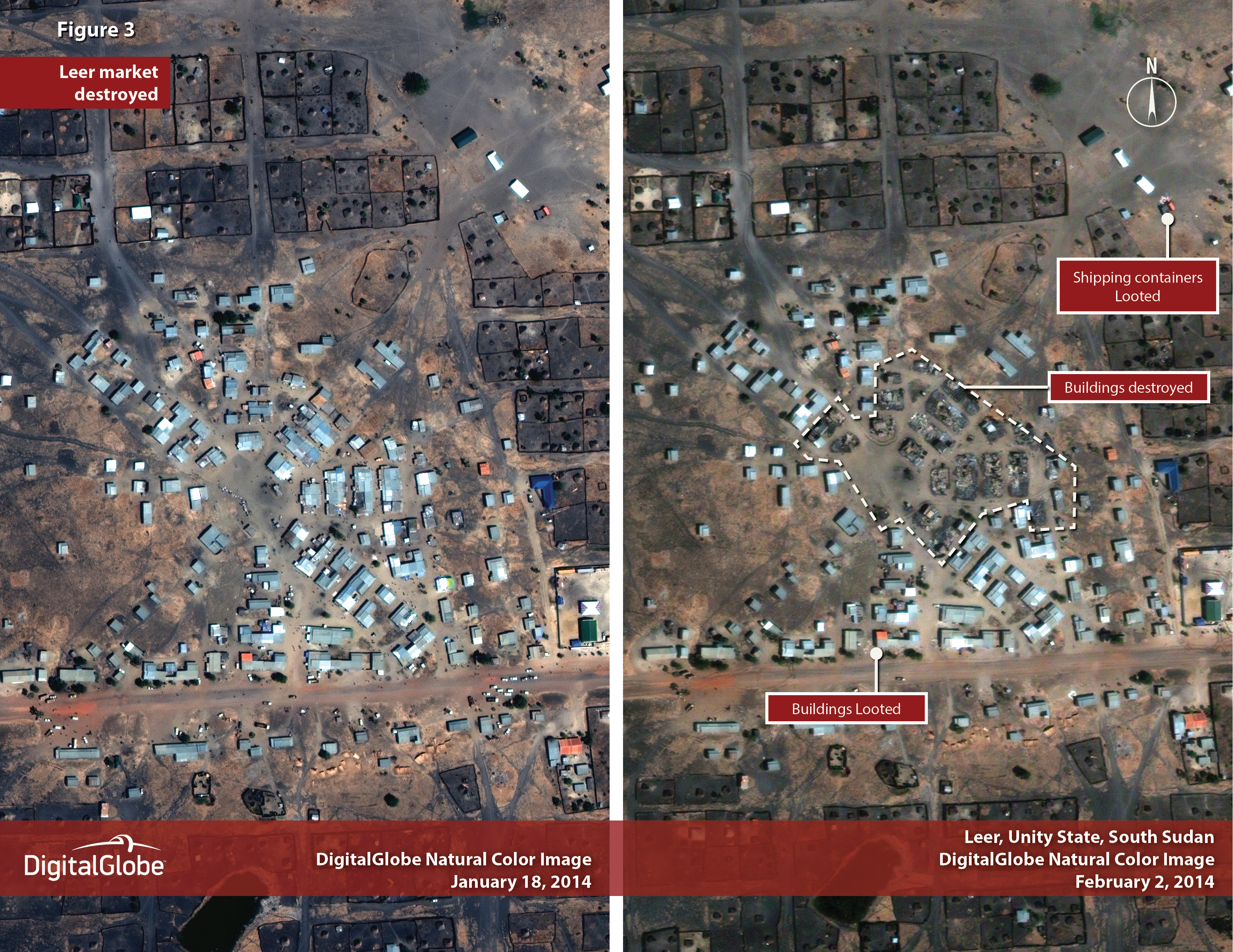 Leer is the home town of South Sudanese “resistance” leader and former Vice President Riek Machar, who recently re-confirmed his continued opposition to the South Sudanese government led by President Salva Kiir. Satellite Sentinel Project's, or SSP, analysis of imagery taken on February 2 found evidence of intentional damage and destruction of civilian structures in the town.