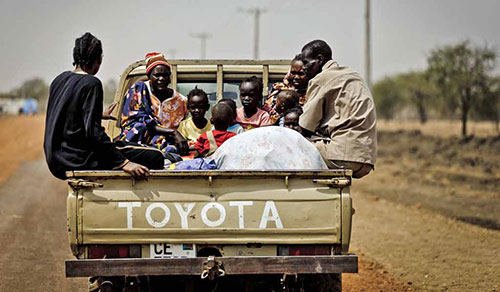 A family flees Abyei town by truck during fighting in late February that left over 100 dead and prompted tens of thousands of civilians to flee. (Photo: Tim Freccia/Enough)